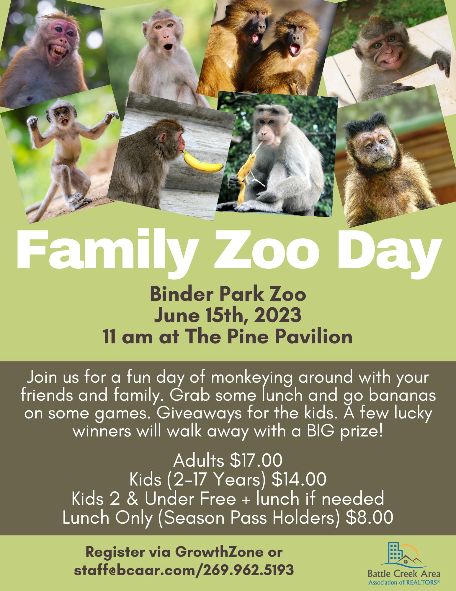 Family Zoo Day will be held at Binder Park Zoo on June 15th, 2023 starting at 11:00am at The Pine Pavilion. Join us for a fun day of monkeying around with your friends and family. Grab some lunch and go bananas on some games. Giveaways for the kids. A few lucky winners will walk away with a BIG prize! We will provide a sandwich platter so attendees can make their own sandwich, as well as chips, cookie and a bottle of water.